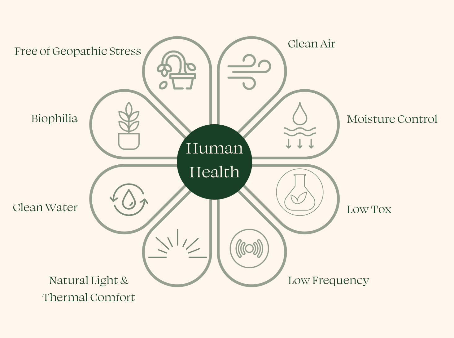 Clean Air → Breathe easy by reducing toxins, mould, and VOCs through smart ventilation and material choices.